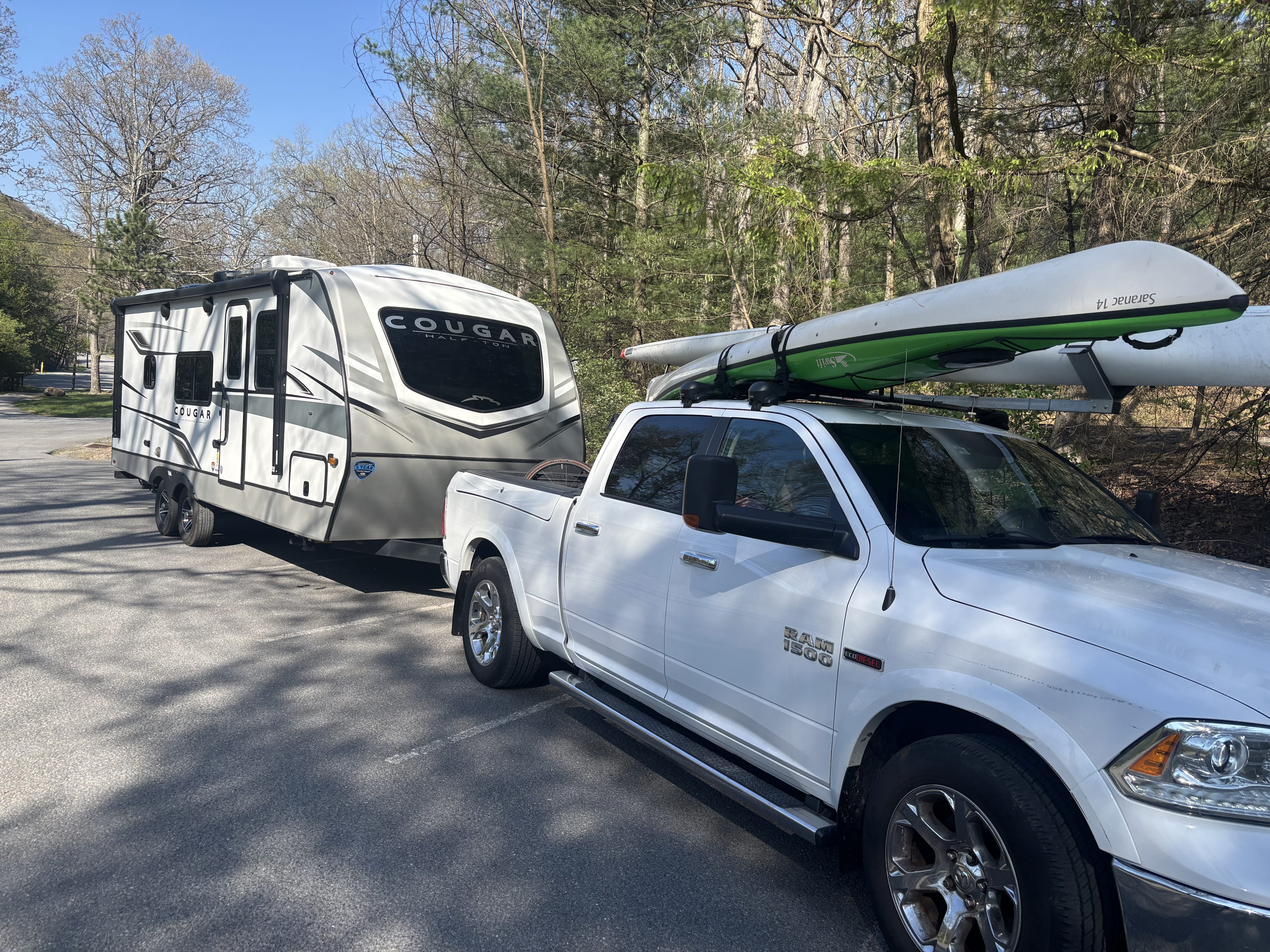 The rule of three is “travel no more than 3 hours a day, get to your destination by 3pm, and spend 3 days at each campground”. We’ve kind of modified it to have a couple of 3 hour days in a row before recovering my pain levels by having a 3 day or more stay at a campground. But we’ve been thinking about longer trips, like across the country, and there’s no way we’d want to do that unless we can manage a few 5+ hour days between the major stops. Doing it 3 hours at a time would take more than a whole summer.
